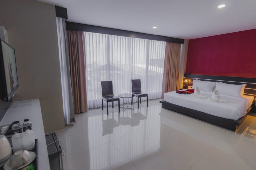 🏨 มากลับเข้าสู่ที่พักกัน ที่พักมีที่จอดรถด้านใต้และมีทั้งลิฟท์และบรรได ส่วนห้องพักที่ผมเลือกนี้ ราคา 690฿/คืน ในห้องมีพื้นที่กว้างมาก เหลือเฟือแบบไปนอนกับพื้นได้อีกสองถึงสามคนเลย และภายในมีครบ ทั้งน้ำดื่ม กาแฟซองพร้อมกาน้ำร้อน ไดร์เป่าผม ผ้าเช็ดตัว ถือว่าครบเลย นอกจากนั้นภายในห้องก็มีวิวให้ได้ชมเหมือนกัน แต่จะเป็นวิวตัวเมือง และมองเห็นแม่น้ำด้วยครับ